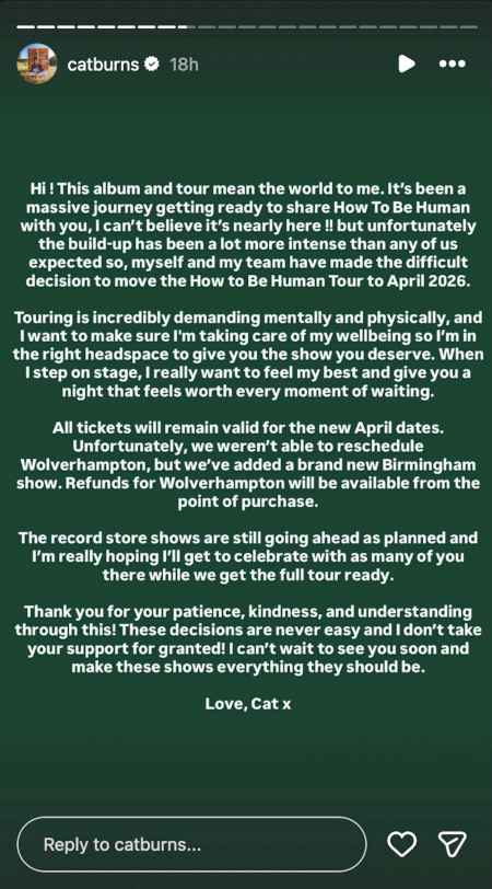 Cat Burns postpones upcoming UK tour after “intense” period to “take care of wellbeing”