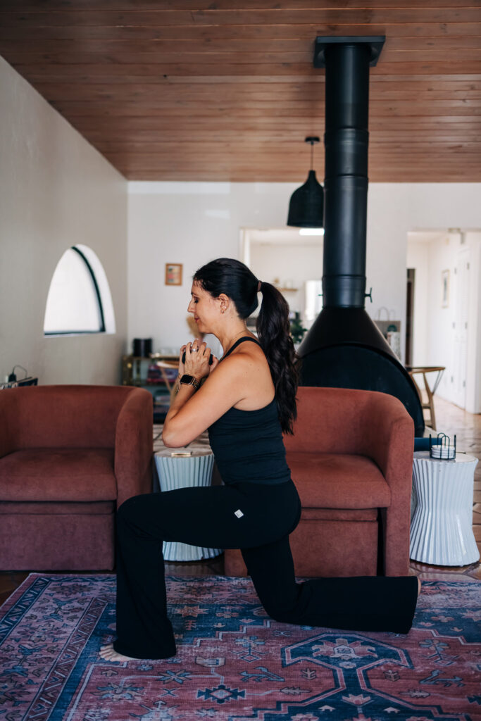 Sit back into your hips like you’re sitting into a chair