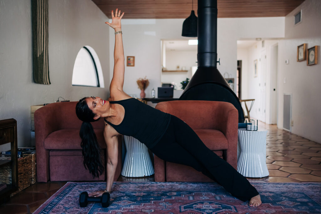 You’ll complete this circuit leading with one side, then repeat it leading with the opposite side. That ensures balanced strength and core engagement.