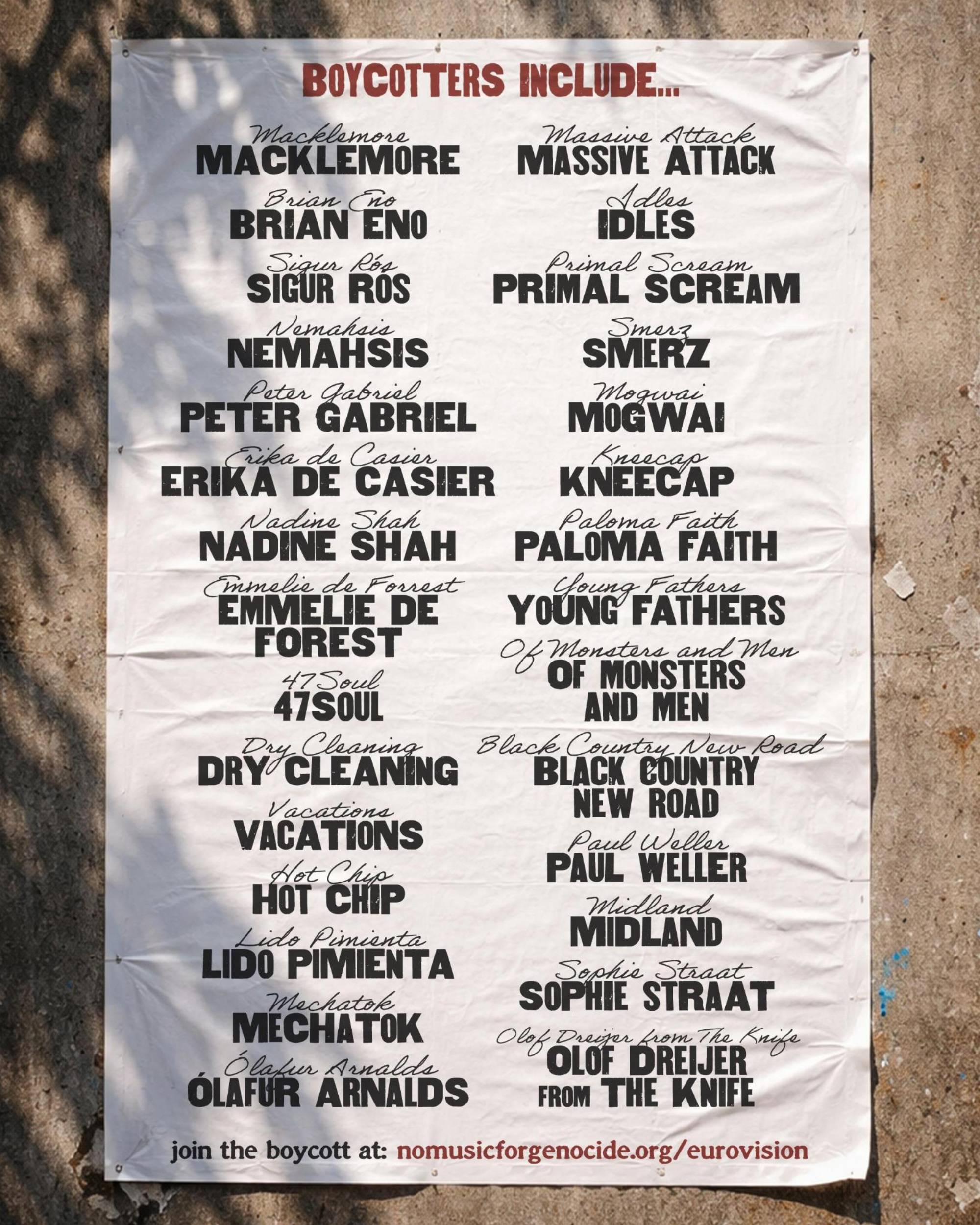 The post Eurovision 2026: Paul Weller, IDLES, Massive Attack, Paloma Faith, Kneecap, Primal Scream, Sigur Rós lead 1000+ artists calling for No Music For Genocide boycott over Israel appeared first on NME.