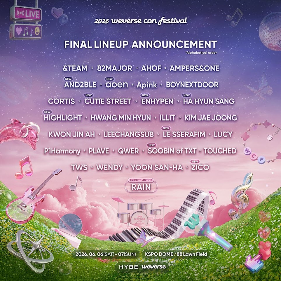 Weverse and HYBE have officially unveiled the complete artist roster for the 2026 Weverse Con Festival, confirming a two-day celebration that spans idol groups, solo acts, bands, and a special tribute slot — all set across two stages at the Seoul Olympic Park complex. Now in its fourth year, the festival has the attraction of both rookie and well-established artists appearing at the festival for the first time.
